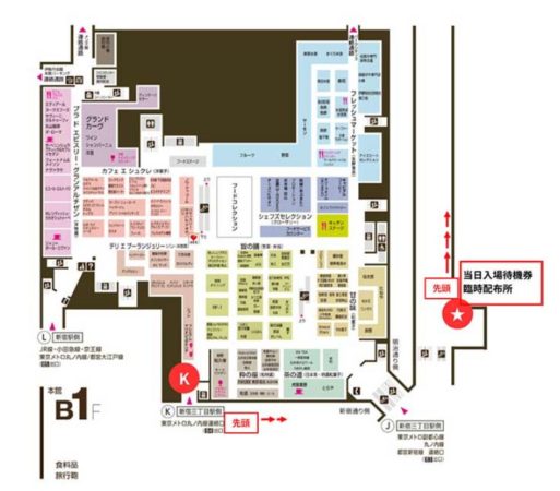 本館地下1階 Gate K ※9:30を過ぎたら、開店後に直接「6階 催物場入口」へ。 |